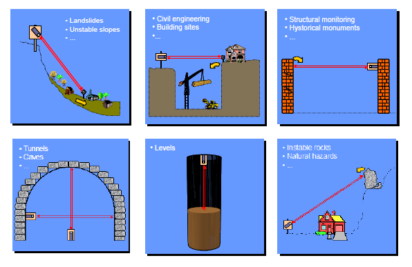 The 3DeMoN laser system was designed to enable accurate and contactless distance measurements using the reflection of a laser beam. It is a modular system including electronics, power supply, data communications devices and control software able to automatically and continuously monitor millimetric scale movements.It also allows to measure hot or inaccessible surfaces, in harsh industrial environments or open air.