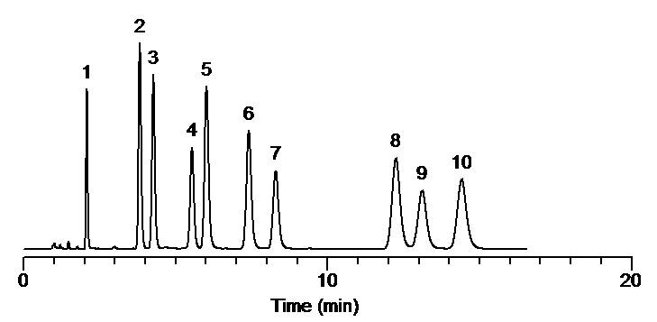 HILIC是RP條件下極性和離子化合物的正相色譜。它結合了LC-RP,NP和IC三種方法的特點。 Inspire HILIC色譜柱在二氧化矽表面保留了一層富含水層.